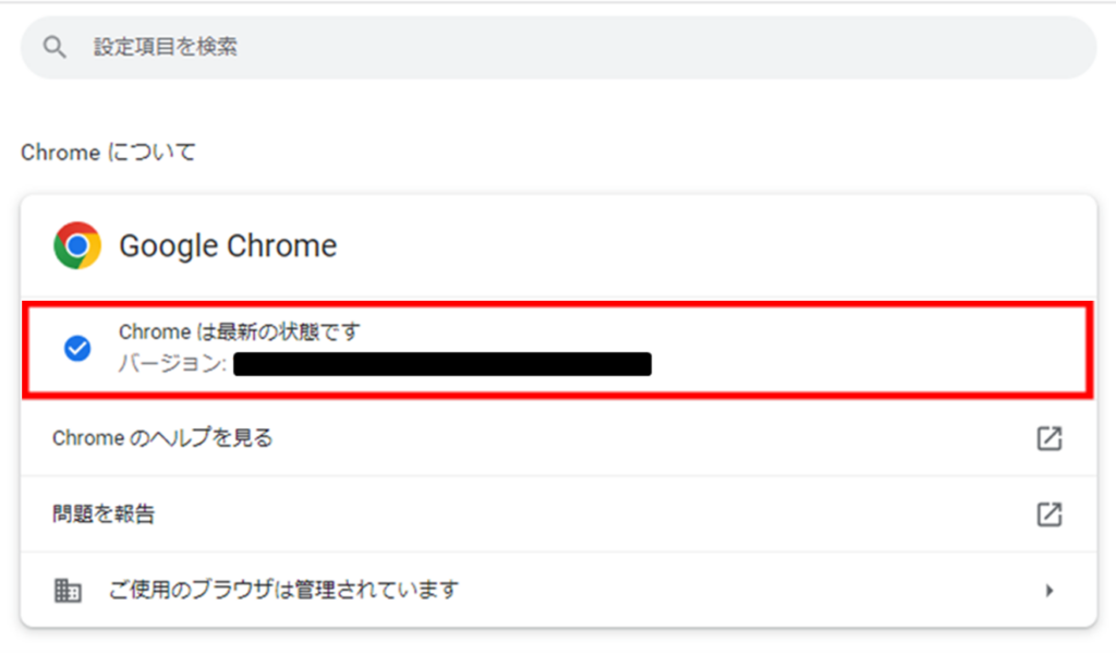 Chromeを開き右上の点が三つ並んだアイコンをクリック→ヘルプ→Google Chromeについて、をクリック。そこでChromeは最新の状態ですと表示されれば、直近のセキュリティ対策が反映されています。