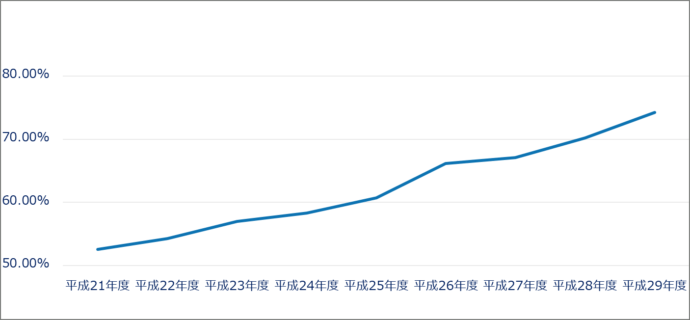 有価証券報告書にサイバーセキュリティに関する記載を行っている企業の割合の推移